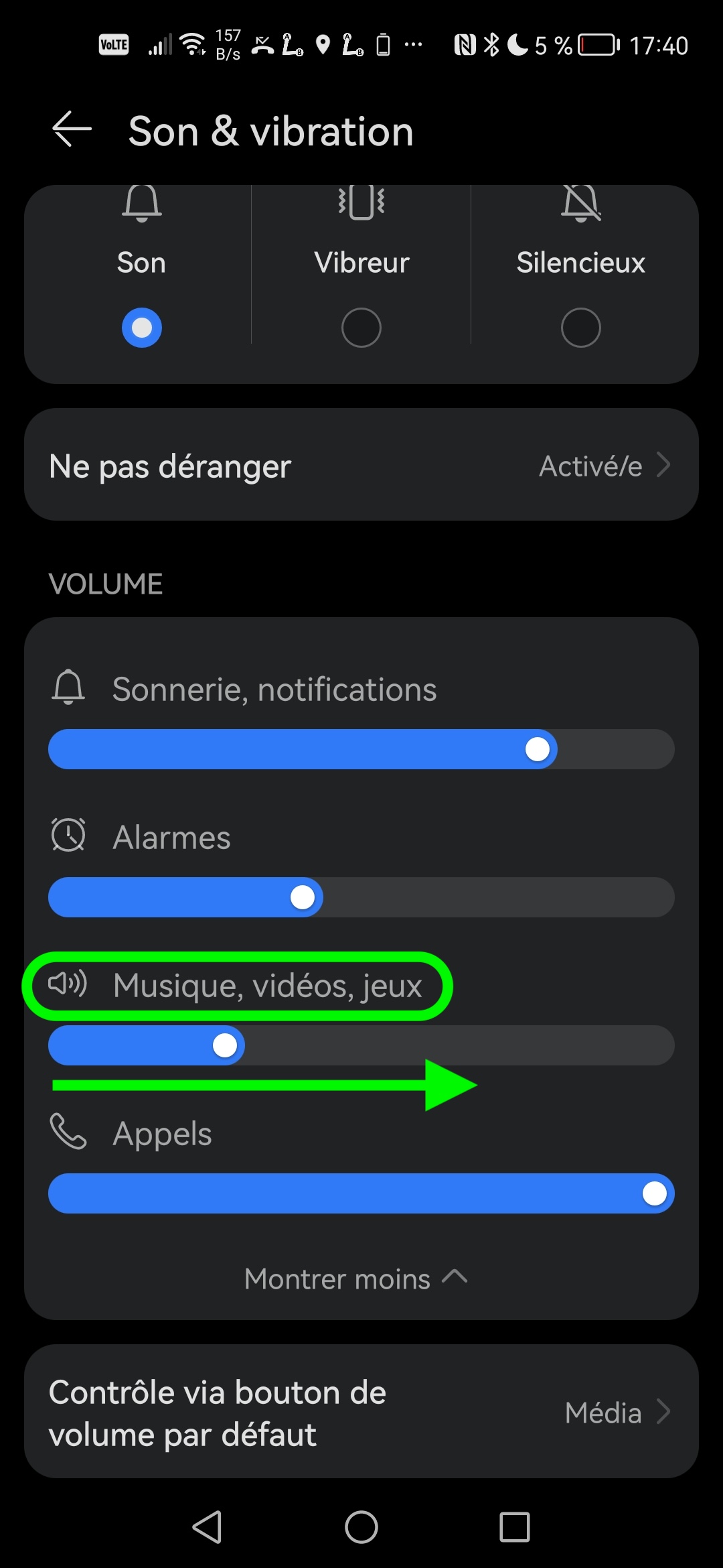 Je t'invite donc à augmenter/diminuer le volume avec les boutons sur le côté gauche de ton téléphone.